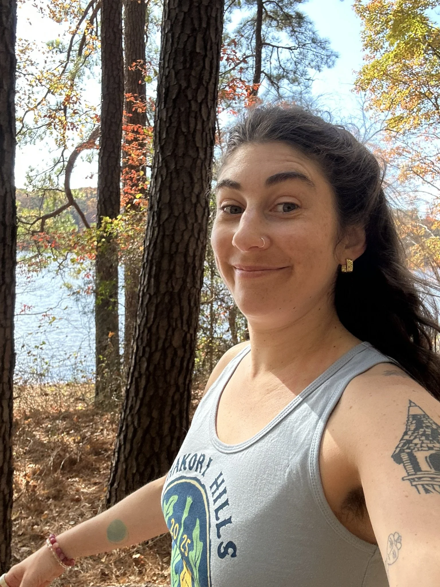 November vacillates between cold and warm here in North Carolina. Sometimes in the fall I’m tempted to wear just a sports bra (and, like, pants) to enjoy the rare warm breeze. But what will people think? Will it make them uncomfortable? Over a few years I’ve grown my ability to pull those tendrils of worry back and think from myself: do I like this? What is most comfortable? And decide what to wear that way.