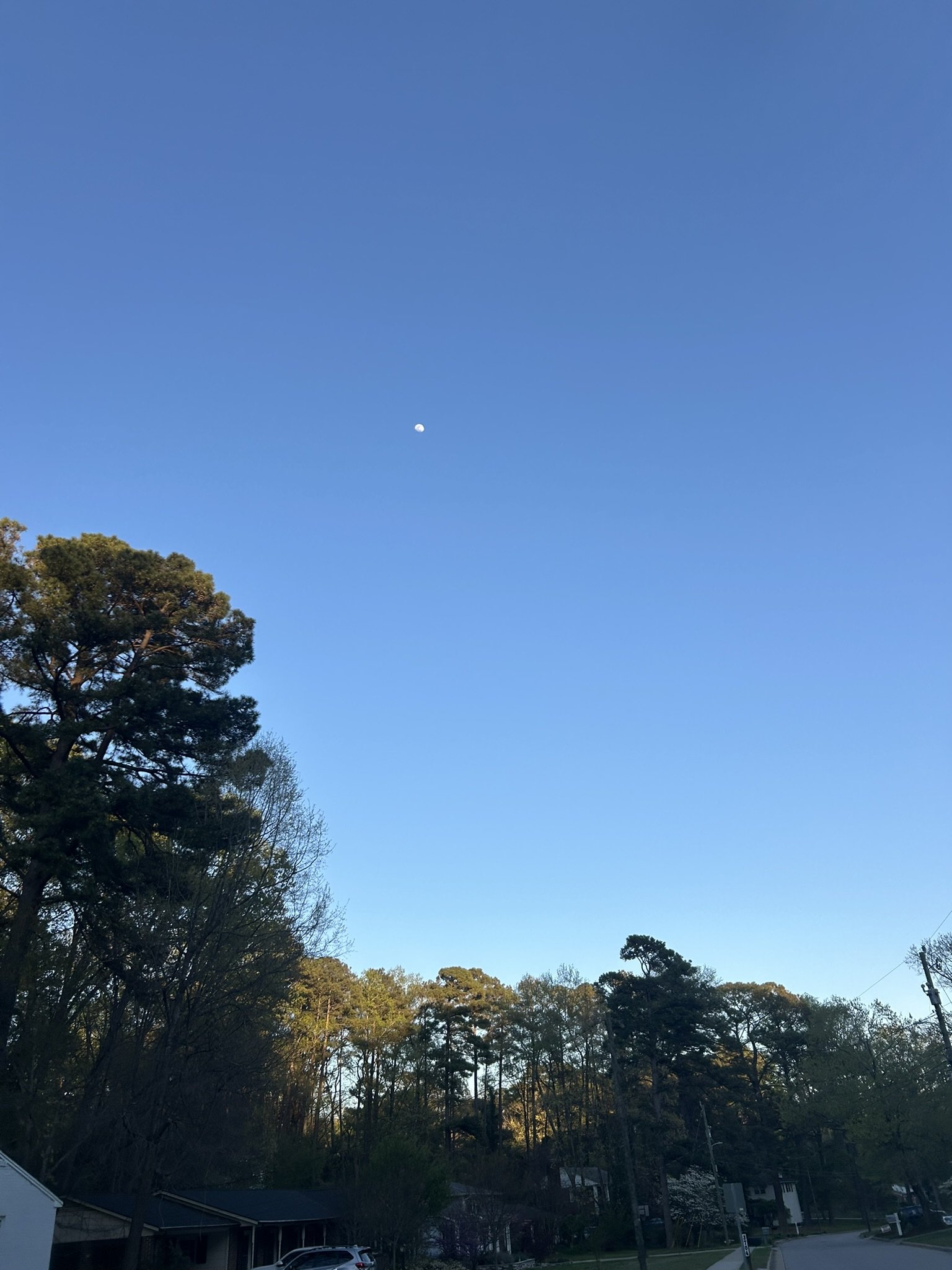 The waxing gibbous moon out in the clear North Carolina evening sky last week