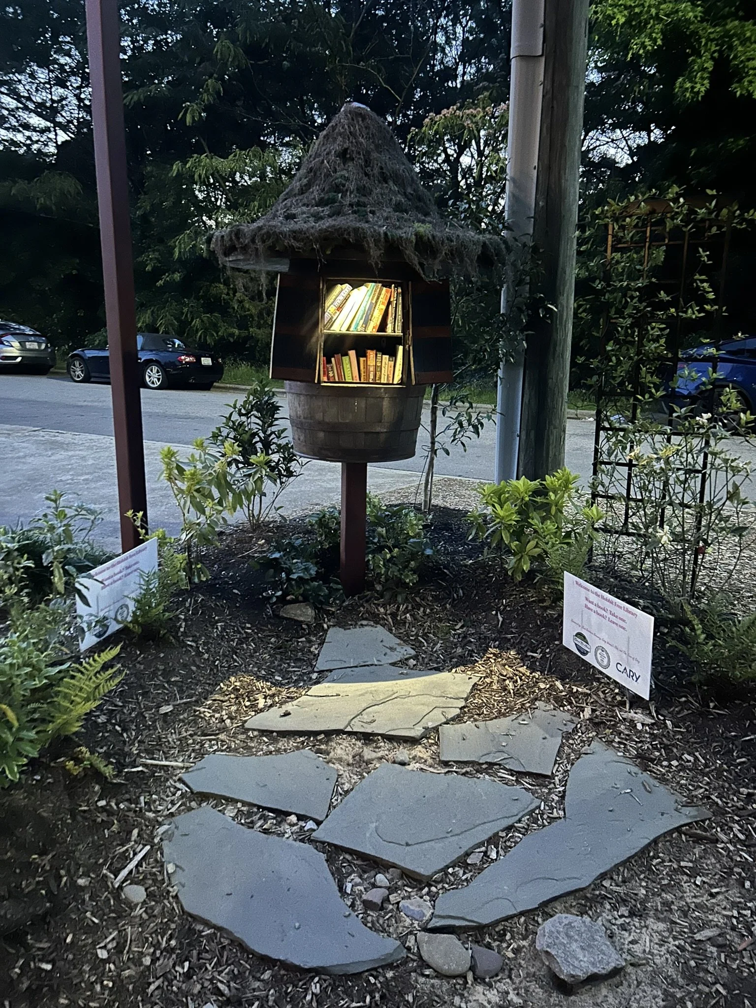 The Hobbit Free Library in Cary, North Carolina, discovered during a date with my partner. I took home a book promisingly entitled The PMS Outlaws that I look forward to reading at the river this summer.