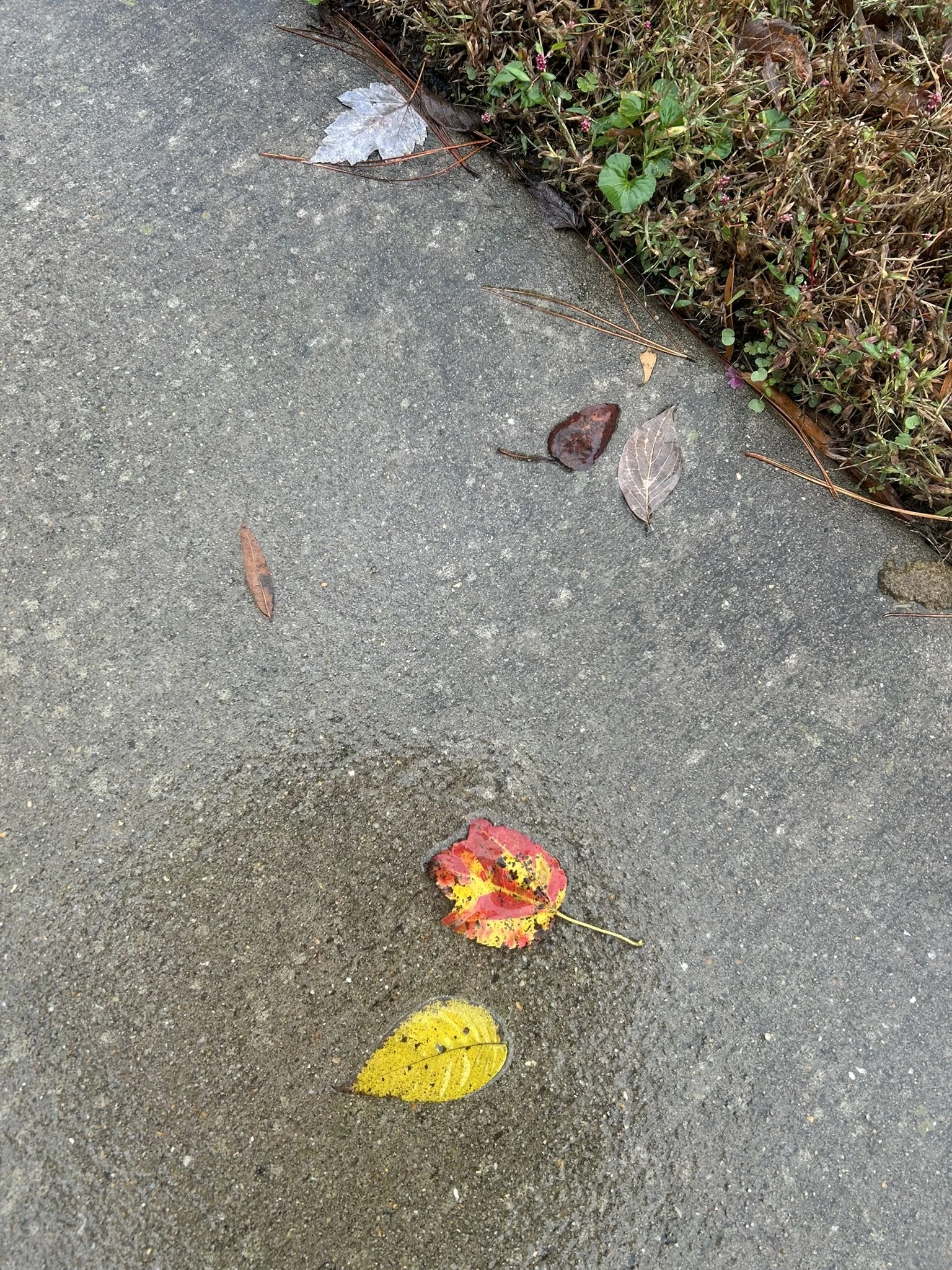 Pretty leaves on the sidewalk during a spate of three imperfect, rainy days this week